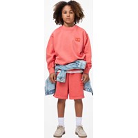 Pink shorts made of organic cotton with embroidered details. The shorts have a loose fit, with side pockets, a back pocket, and elastic and drawstring at the waist which make them comfortable and easy to move in.