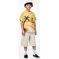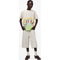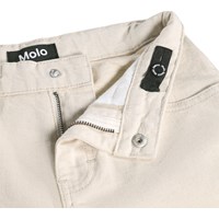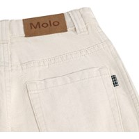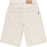 Off-white denim shorts made of cotton with a relaxed and baggy fit. The shorts goes just above the knee, has five pockets and an adjustable elastic waistband for optimal fit. The smallest sizes (92-134) have a practical press button, while sizes 140-176 are equipped with a classic jeans button.