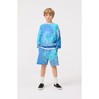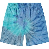 Shorts in organic cotton jersey. The shorts are knee-length, with pockets at the front and a loose fit with an elastic waist, making them comfortable to wear. The shorts are in blue tie-dye.All our tie-dye is handmade, creating a unique pattern that varies from style to style. For a complete outfit, pair with a matching sweatshirt.