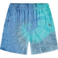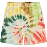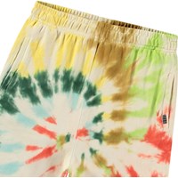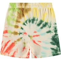 Shorts in organic cotton jersey. The shorts are knee-length, have front pockets, and have a loose fit with an elastic waist, making them comfortable to wear. The shorts are in a multi-coloured tie-dye pattern.All our tie-dye is handmade, creating a unique pattern that varies from style to style. For a complete outfit, pair with a matching sweatshirt.