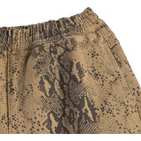 Brown shorts made of soft cotton with a snake print, a wide elastic waistband, and internal drawstring at the waist for an adjustable fit. The shorts have pockets on the sides and at the back, as well as a loose and relaxed look that provides good freedom of movement.
