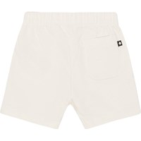 Off-white shorts in soft, organic cotton jersey. The shorts have side seam pockets, a back patch pocket and elastic at the waist, with a drawstring, which ensures a good fit and makes them easy to pull on. They have a sweet, little embroidered smiling face on the front.