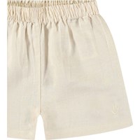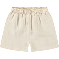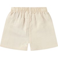 Beige linen shorts for the little ones. The elastic waist and loose fit make them easy to put on and take off.