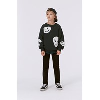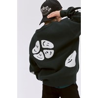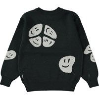 Knit jumper with a white pattern that has large, happy faces that merge together to create new forms- maybe you can spot a peace sign or an alien? This jumper is in a cotton/wool blend, has long sleeves, a round neck with knit rib, long sleeves and rib at the sleeves and bottom. This jumper is in a loose fit.