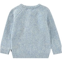 Light blue jumper for the little ones with a smiling face on the tummy. The jumper has a round neckline, rib edges, and buttons at the neck, making it easy to put on and take off.