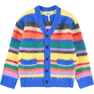 Fluffy multicoloured striped cardigan. This cardigan has an oversized fit, a V-neckline and ribbed edges around the neck, sleeves and waist.