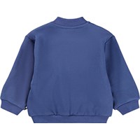 Blue sweatshirt for the little ones made of soft organic cotton with an embroidery of a teddy bear on the chest. The sweatshirt has a zipper on the front, a small ribbed collar, raglan sleeves and ribbed edges around the waist and sleeves. Combine it with the matching pants for a complete set.