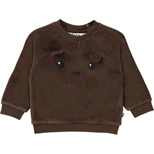 Derry is a dark brown velour baby top with an embroidered face on the front and with small, sewn on ears. Wear it with matching baby trousers.