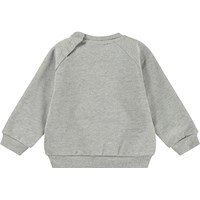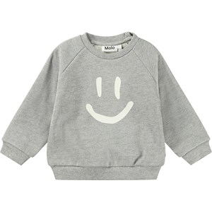 Grey melange sweatshirt for the little ones in organic cotton jersey with a brushed inner face, making it soft and warm to wear. The sweatshirt has raglan sleeves, rib cuffs and rib at the waist and sleeves, and a round neckline with two poppers at the back, making it easy to take off and put on. On the front, there is a white print of a big smile.