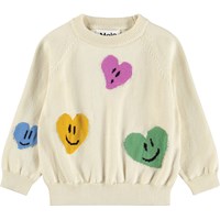 Long-sleeved, white knitted jumper for the little ones made of organic cotton with hearts. It has raglan sleeves and ribbed edges which provide a good fit and freedom of movement.