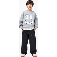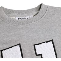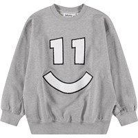 Grey marl sweatshirt madeof soft, organic cotton with a round neck and ribbed edges at the sleeves, neck, and bottom. The sweatshirt has an oversized, relaxed fit with a soft embroidery on the front of a smiling number 11.