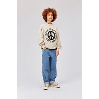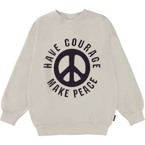 Mar is a beige unisex sweatshirt with an embroidered peace sign with the text 'Have courage - make peace' on the chest. The sweatshirt is in a great length. Wear the sweatshirt with matching shorts.