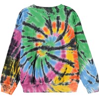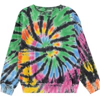 Multicoloured tie-dye sweatshirt made of soft, organic cotton with a round neck and ribbed edges at the neck, sleeves, and bottom. The sweatshirt has a loose and relaxed fit.