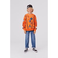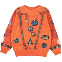 Memphis is a unisex sweatshirt in orange with an astronaut space suit print.