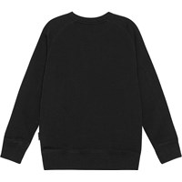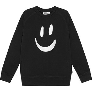 Black jumper in soft, organic cotton. The jumper is in a loose fit, has a round neck, raglan sleeves and rib at the sleeves and bottom. The white, smiling face embroidery on the front helps make the jumper cosy and comfortable.