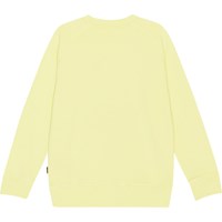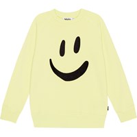 Yellow jumper in soft, organic cotton. The jumper is in a loose fit, has a round neck, raglan sleeves and rib at the sleeves and bottom. The black smiling face embroidery on the front helps make the jumper cosy and comfortable.