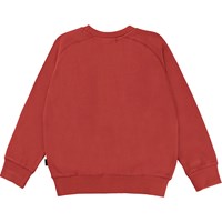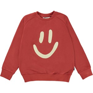 Mike is a red unisex sweatshirt with a print of a smiley face on the front.