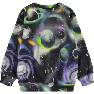 Colourful sweatshirt made of soft organic cotton with a space print. The sweatshirt has ribbed edges around the neck, sleeves and waist. The sweatshirt has a loose fit.