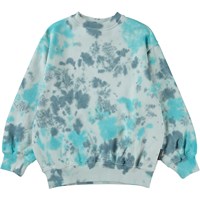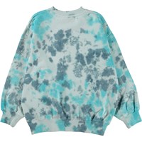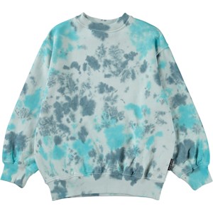 Monti is a unisex sweatshirt in blue with a tie-dye print. It has an elastic rib edge at the neck, sleeves and bottom. All of Molo's tie-dye is made by hand, so each product has its own unique look.