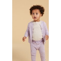 Earth is a beige baby top in rib with a snap closure at the neck. Wear it with matching trousers.