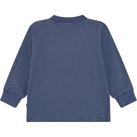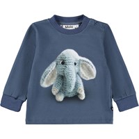 Dark blue long-sleeved top for the little ones made of organic cotton jersey. On the long-sleeved top, there is a print of a crocheted baby elephant. The long-sleeved top offers good flexibility, long sleeves and ribbed cuffs. It also has two snap buttons on the left shoulder to make it easy to put on.