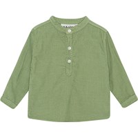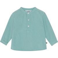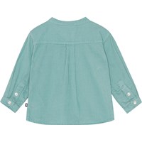 Blue shirt in pin wale corduroy for small children. This shirt is in 100% cotton, has long sleeves with a mandarin collar and an easy button closure at the collar and the sleeves. Wear it with the Sois trousers in the same colour.