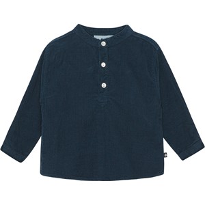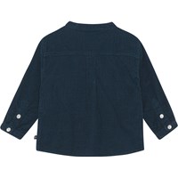 Dark blue shirt in pin wale corduroy for small children. This shirt is in 100% cotton, has long sleeves with a mandarin collar and an easy button closure at the collar and the sleeves. Wear it with the Sois trousers in the same colour.