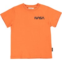 Rame is an orange unisex t-shirt with a print of Nasa on the front. The t-shirt has a round neck.