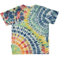 Riley is an oversized, unisex, crewneck t-shirt in a colourful batik print. The t-shirt has short sleeves.