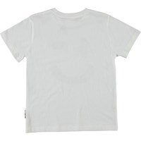 Roxo is a white, unisex t-shirt with a print of a smiley face on the front. The t-shirt has a round neck.