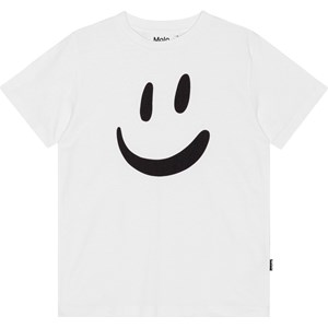 White, short sleeve t-shirt in organic cotton with a large smiling face print on the front. The t-shirt has a round neck and is in a regular fit.