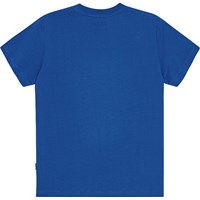 Molo x Plan International T-shirt in blue, made from organic cotton. The T-shirt has short sleeves and a round neckline with ribbed trim. It has a regular fit and a large smile printed in black on the front. Read more about Molo X Plan International here.