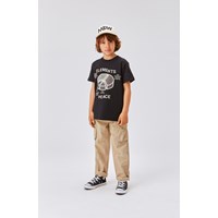 Roxo is a black, unisex, crewneck t-shirt with the text 'Elements of peace' and a print of a pie chart that shows what needs to be done in order to achieve peace. The t-shirt has shourt sleeves.