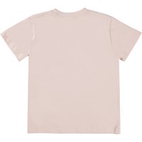 Roxo is a pink, unisex, crewneck t-shirt with a print of a smiley face. The t-shirt has short sleeves.