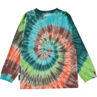 Long sleeve t-shirt with multi-coloured spiral tie-dye print. This long sleeve t-shirt is in 100% cotton, has a round neck with rib and rib at the sleeves. It is in a loose fit.