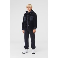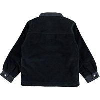 Henley is a dark blue overshirt jacket in corduroy. The jacket has front pockets on the chest and collar and it has a botton closure. The Jacket has side pockets.