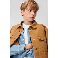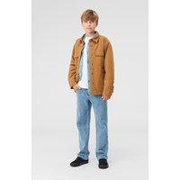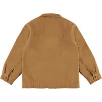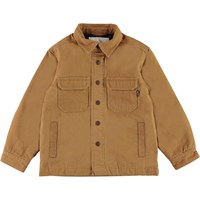 Henley is a sand coloured overshirt jacket. It has patch pockets on the chest, a collar, button closure and pockets at the sides.