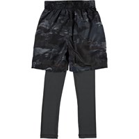 Acel is a pair of cool shorts in grey camouflage with grey piping at the sides of the legs. They have an inner layer of long tights in dark grey. The Acel shorts are so cool and comfortable that they can be used for sport or everyday wear. Wear Acel with the matching track jacket.
