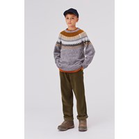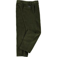 Aces is a piar of green corduroy trousers. They have a slightly wide, loose fit as well as front and back pockets.