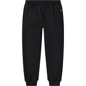 Black joggers in organic cotton with an elastic waistband and an internal drawstring, ribbed cuffs at the ankles, side pockets, and a back pocket. The trousers have a regular fit and a brushed inner face, making them soft and warm to wear.