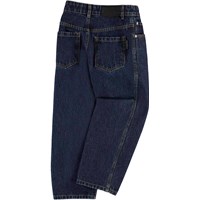 Aiden is a pair of dark blue denim jeans. Aiden has wide legs that give them a baggy, casual look.