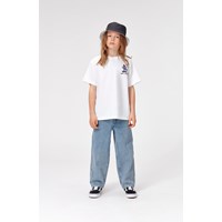 Aiden is a pair of denim jeans in a light wash. Aiden has wide legs that give them a baggy, casual look.
