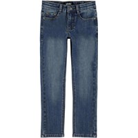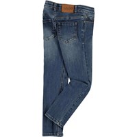 Aksel is a pair of blue, slim fit jeans. Aksel has front and back pockets and a black leather logo patch.
