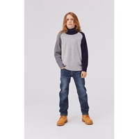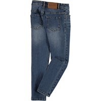 Aksel is a pair of slim fit denim jeans in blue. They have a bit of stretch, which makes them comfortable and easy to move around in. Please note that sizes up to and including 134 have a snap and not a jeans button.