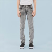 Grey washed classic, slim fit, denim jeans. Note that the sizes to and including 134 have a snap closure, not a jeans button.