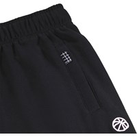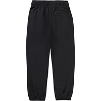 Black sweatpants made of soft cotton in a regular fit. The sweatpants have an adjustable elastic waistband with an internal drawstring, practical side pockets, a back pocket, and elastic at the bottom for a relaxed and flexible style. It is perfect for both play and everyday use.