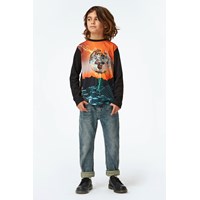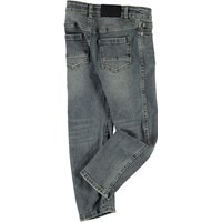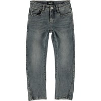 Alonso is a pair of grey/blue jeans in a washed look and in a regular fit. They have belt loops and pockets on the front and back. The jeans have a dart at the knees that gives them a baggy look. Please note that sizes to and including 134 have a snap closure instead of a jeans button.