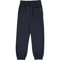 Am is a pair of black sweatpants with a thin, grey stripe at the sides. They have an elastic waist and front and back pockets.
