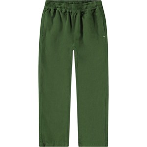 Green linen pants with an elasticated waist and internal drawstring. The pants feature side pockets and have a loose fit.