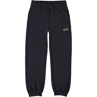 Ams is a pair of dark blue sweatpants with a Molo logo on the front. They have an elastic waist and legs.